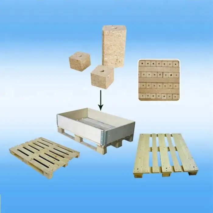 The machine produces wood blocks with a density ranging from 550 to 600 kg per cubic meter.