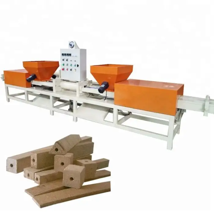 The machine is specifically designed for processing wood sawdust, allowing for the creation of pallet blocks from this material.