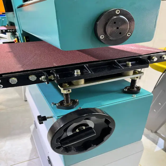 The sanding machine has a power of 1.5kw, weighs 107kg, and features a size of 1270*889*610mm. It is designed for a sandbelt size of 457*135mm.