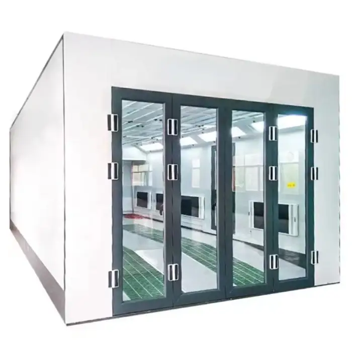 The booth is designed for efficient vehicle painting, ideal for body repairs, refinishing, and various automotive painting projects.