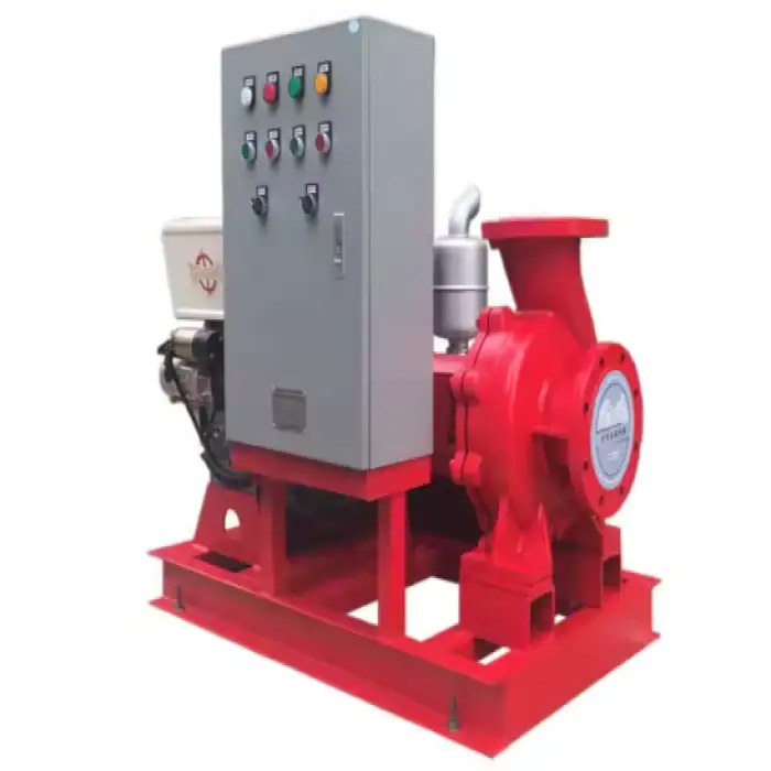 The pump operates on a diesel engine, ensuring effective firefighting capabilities.