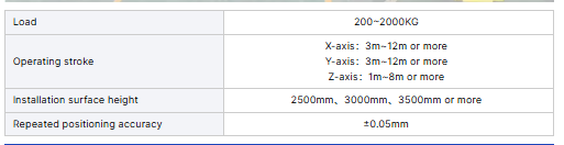 The repeated positioning accuracy of the XYZ Gantry Robot is ±0.05 mm.