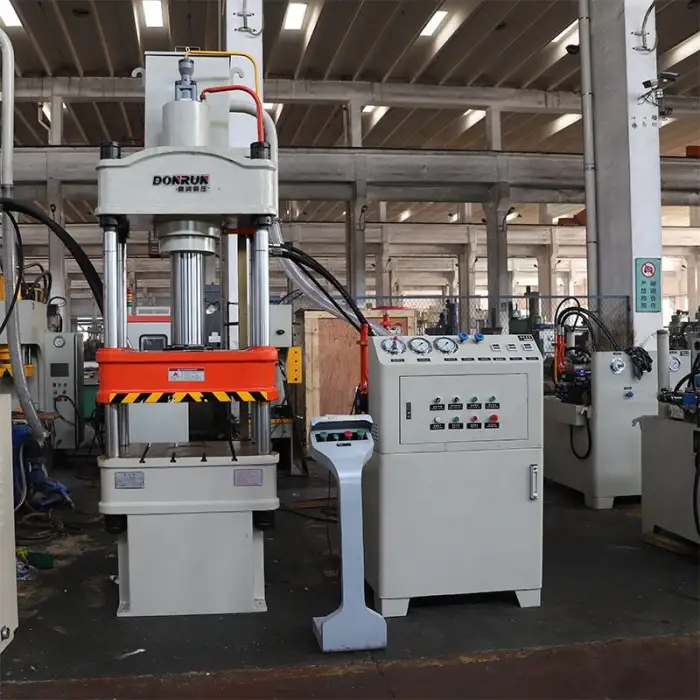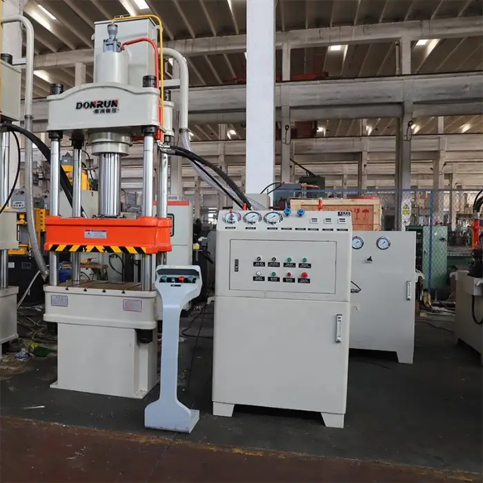 This hydraulic press is suitable for various industries including automotive, aerospace, and general metal processing.