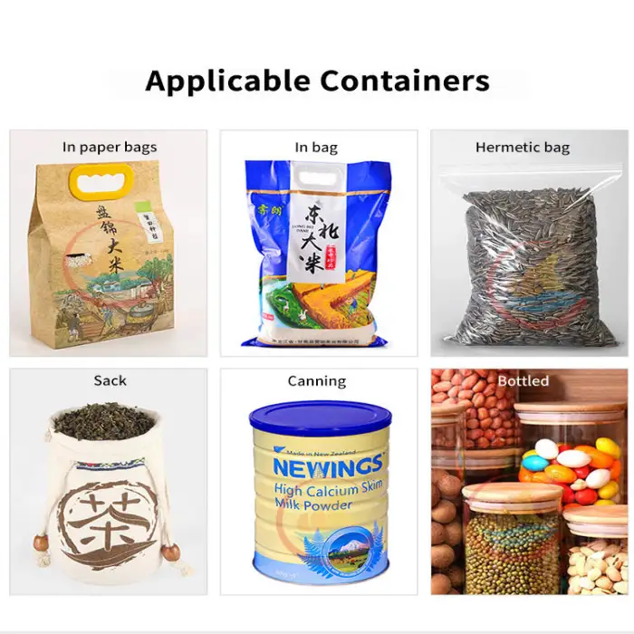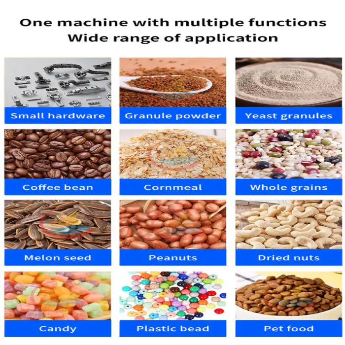 This machine is designed to handle various materials including rice, grains, beans, and other similar particles.