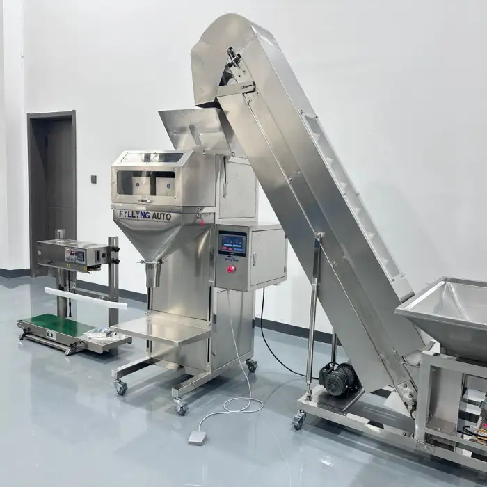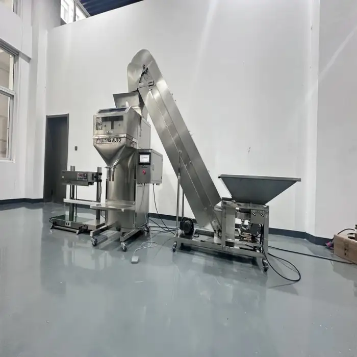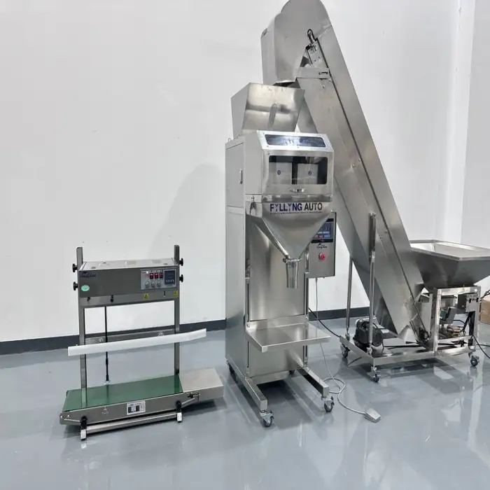 The machine has a filling range of 5g to 5kg, making it suitable for various granular products.