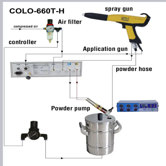The machine features a fast color change capability, allowing you to switch between different powder coatings efficiently for diverse projects.