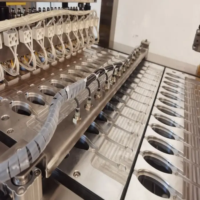 The 12 Line Honey Spoon Filling Sealing Machine uses heat sealing, which provides strong and secure packaging.
