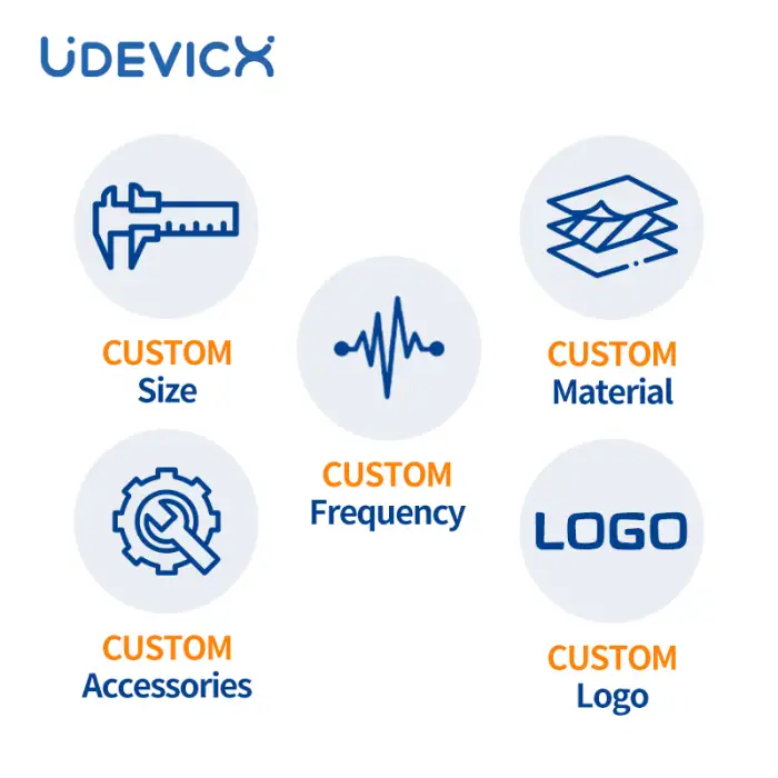 The standard ultrasonic frequency is 40 kHz, with a customizable option of 28 kHz available.