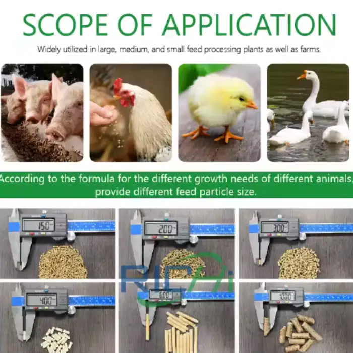 This feed mill can produce pellets with sizes ranging from 1 to 12 mm, suitable for various feeding needs.