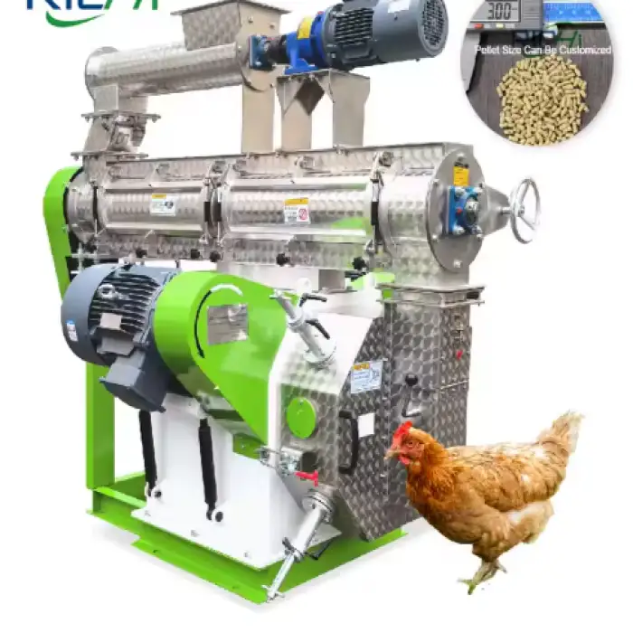 This machine can produce feed pellets for poultry such as chickens, ducks, and turkeys, as well as nutritious feed for livestock including pigs and cattle.