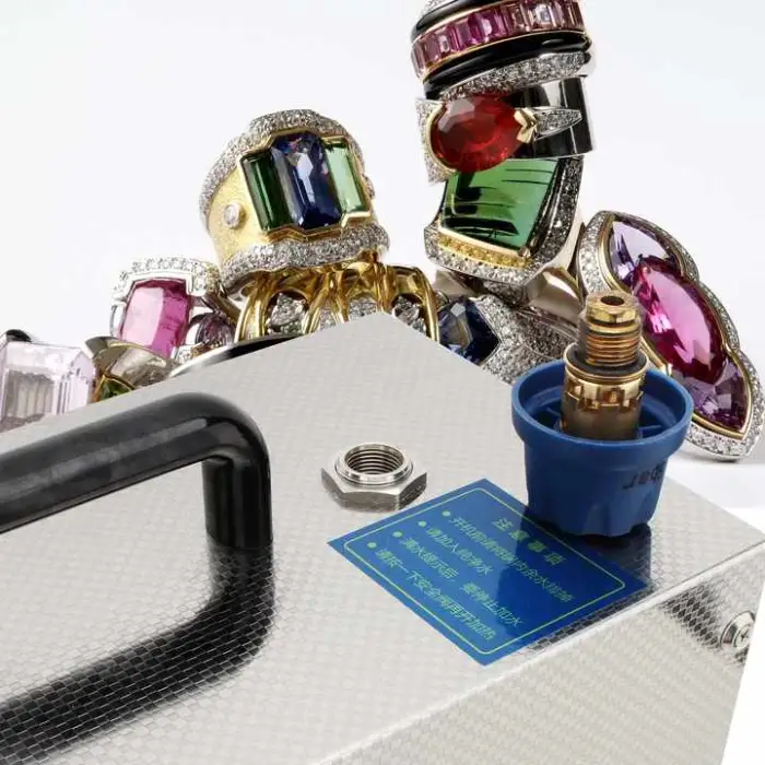 The 1300W Jewelry Steam Cleaner is designed for cleaning silver and gold jewelry, as well as precious gemstones and watches.