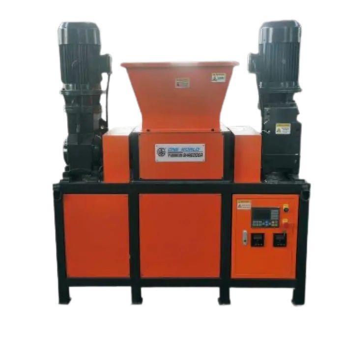 The 1400 Model Double Shaft Shredder can handle a wide variety of materials including industrial waste, plastics, metals, wood, electronic waste, paper, and cardboard.