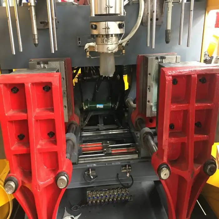 This machine is designed to produce bottles using HDPE (High-Density Polyethylene) and PP (Polypropylene).