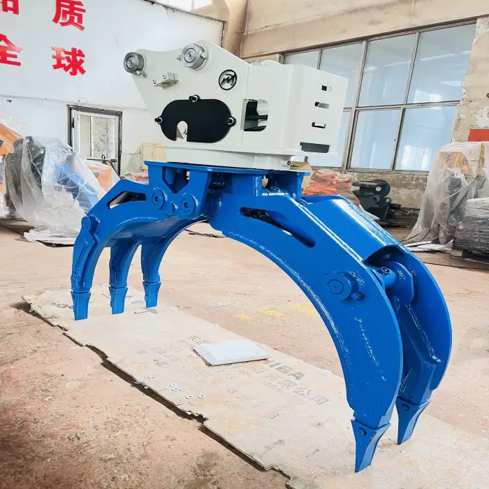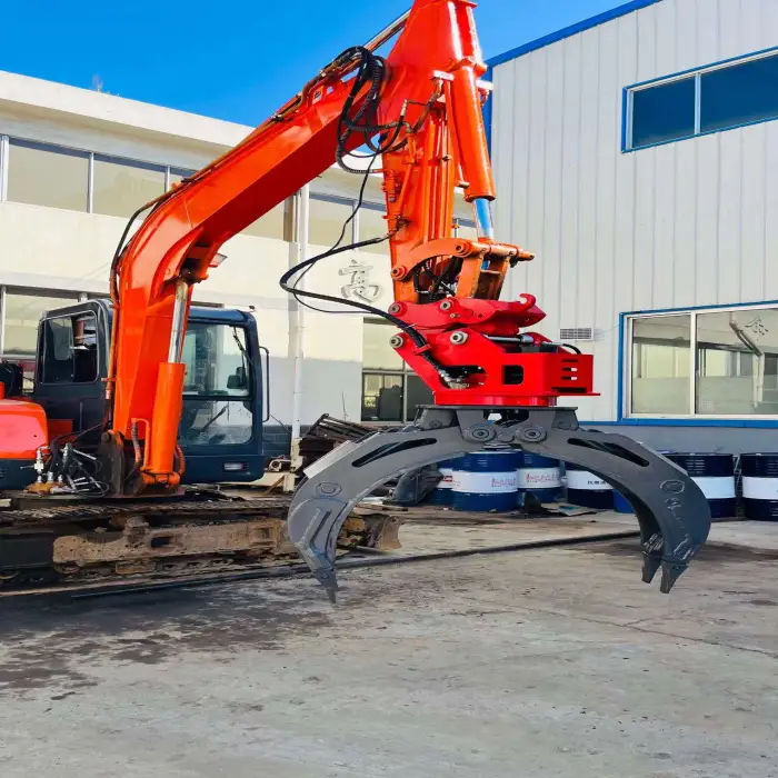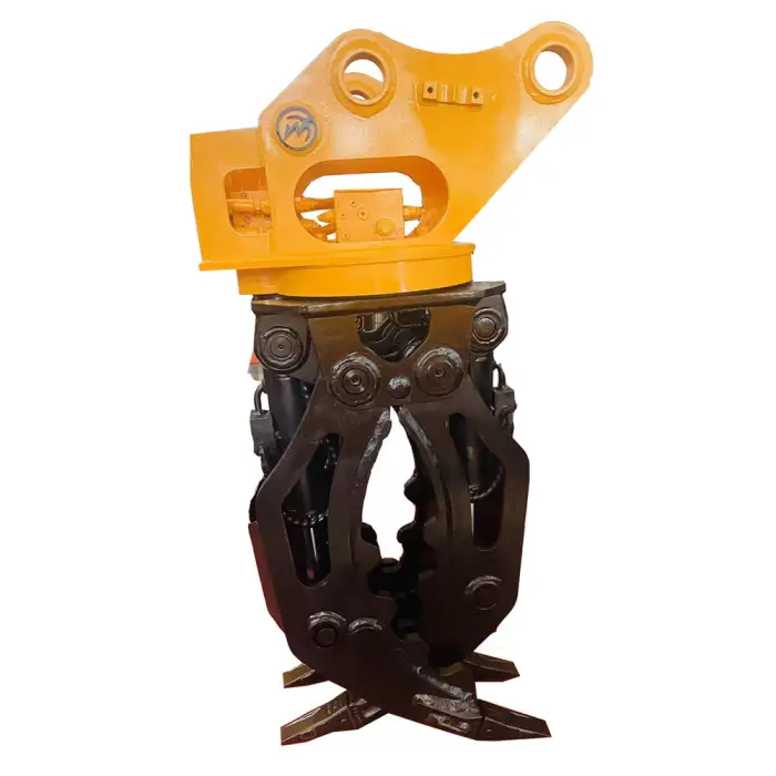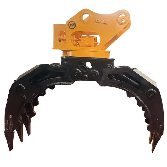 Its strong construction, maximum jaw opening, and 360-degree rotation enhance its efficiency in material handling.