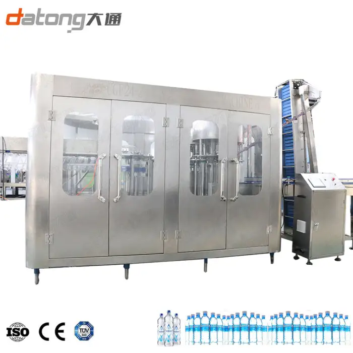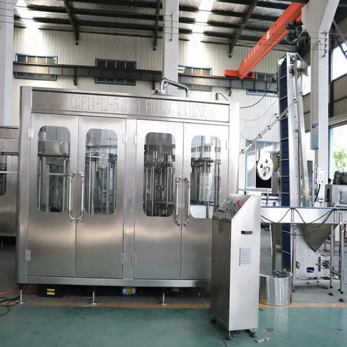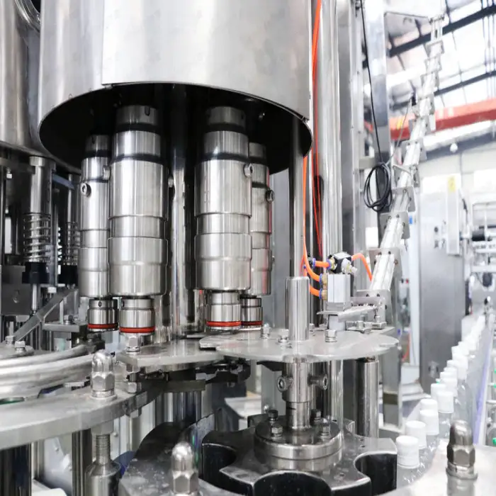 The main functions include bottle washing, filling, and capping, all performed seamlessly in an automated process.