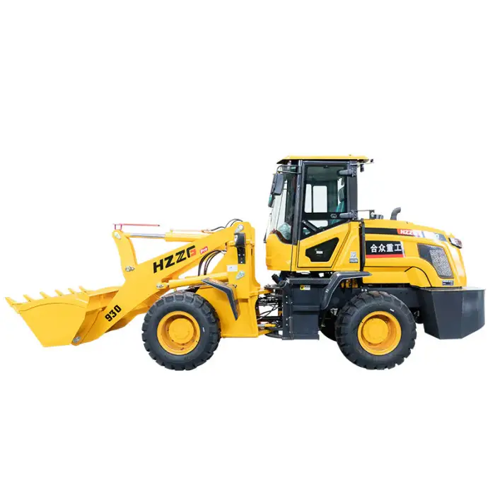 The mini wheel loader has a 4x4 wheel drive system for enhanced traction.