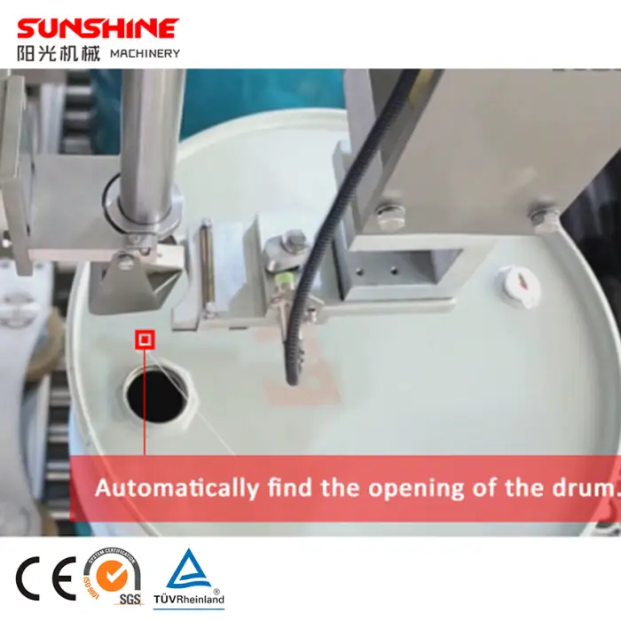 The machine accommodates 200 liters of iron or chemical drums, which are commonly used for liquid storage.
