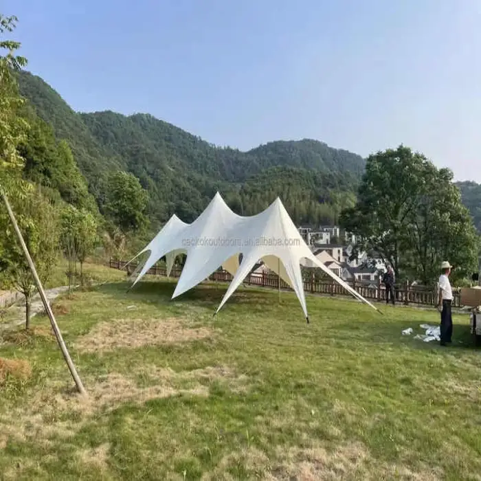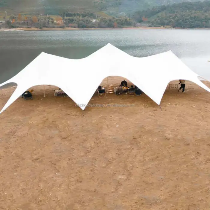 The tent is constructed from 900D Oxford cloth with a PU coating of 5000mm, offering durability and UV protection.