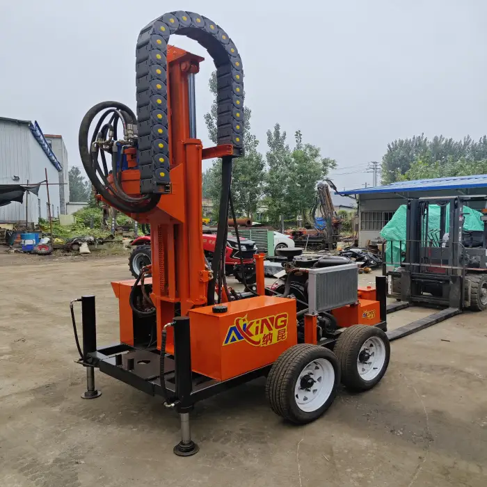 This drilling rig is suitable for drilling water wells for residential use, creating boreholes for irrigation, supporting construction projects requiring water, exploring groundwater sources, and performing geological surveys.