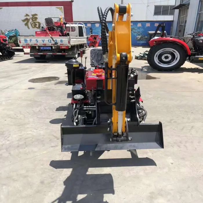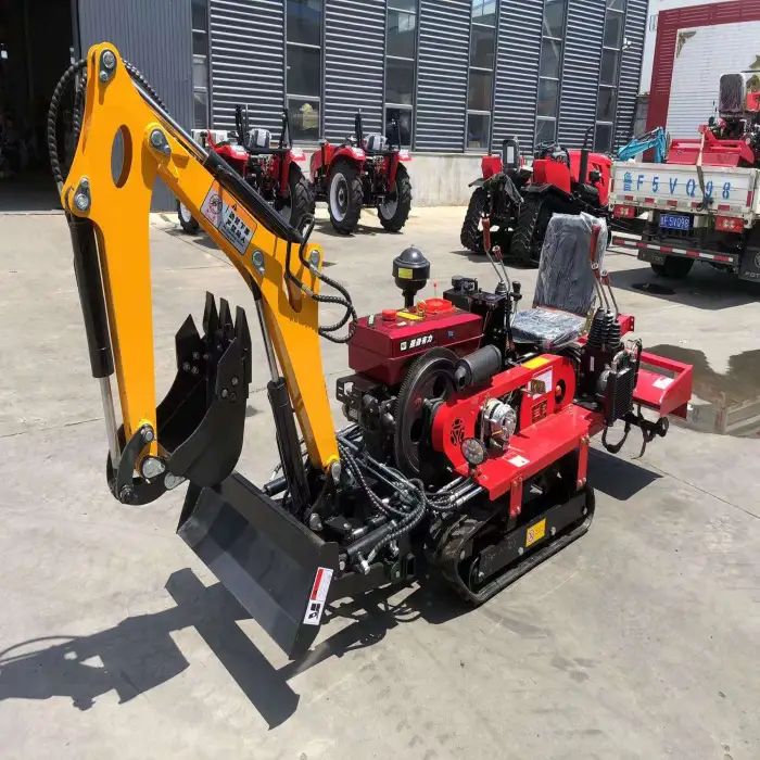 This tractor can perform a variety of tasks including tilling soil, digging ditches, weeding, moving materials, and backfilling areas after excavation.