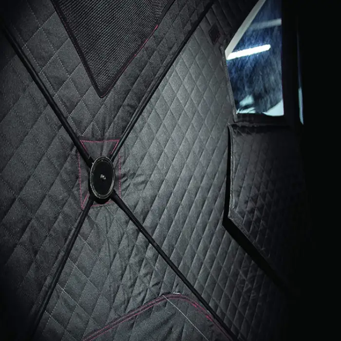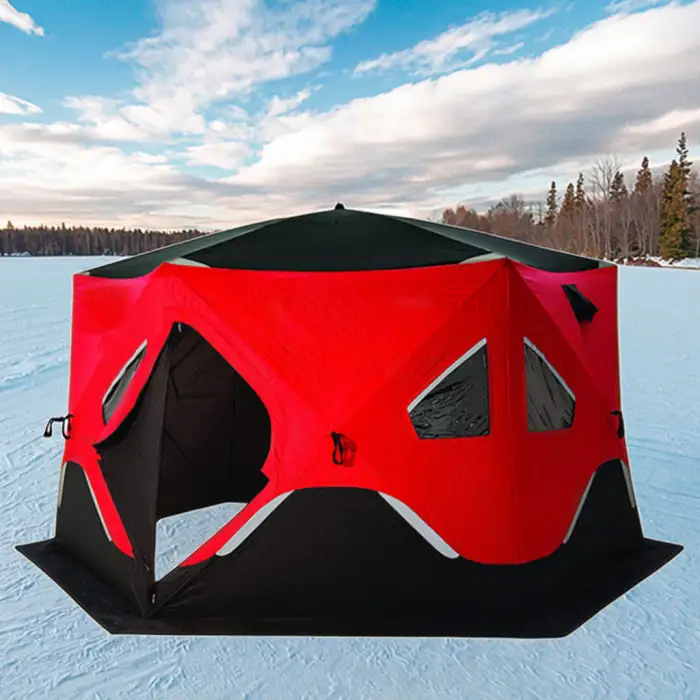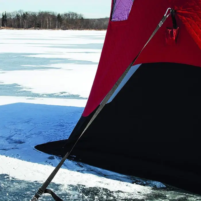 The tent features an easy pop-up design that allows for quick setup in just a few minutes, making it convenient for your ice fishing trips.