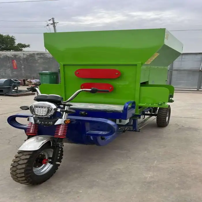 The feed mixer is constructed from durable metal, ensuring longevity and reliability.