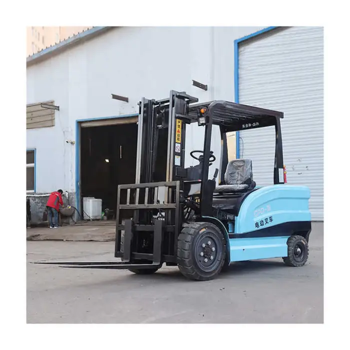 While specific safety features are not detailed, electric forklifts typically include features such as automatic braking and safety lights. Always refer to the user manual for detailed safety information.