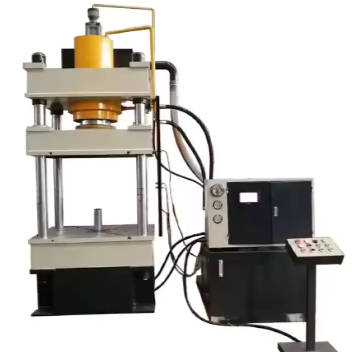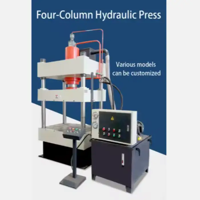 This machine is a Four-column Two-beam Hydraulic Press, which ensures stability and precision during operation.