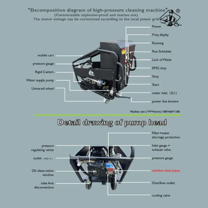 This pressure washer is ideal for car wash shops, food processing industries, metal surface cleaning, and various industrial cleaning tasks.