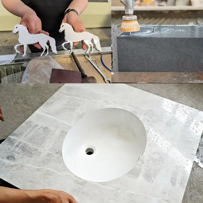 Water jet cutting provides high precision, reduces material wastage, and can cut through hard materials without generating heat, which can lead to cracks or distortions.