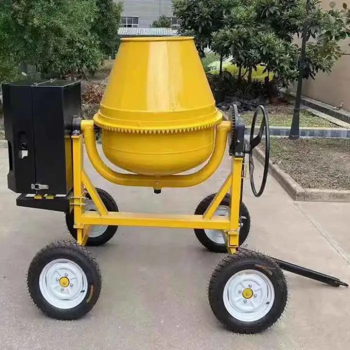 Regular maintenance includes checking the engine, ensuring the mixing drum is clean, and inspecting all moving parts for wear.