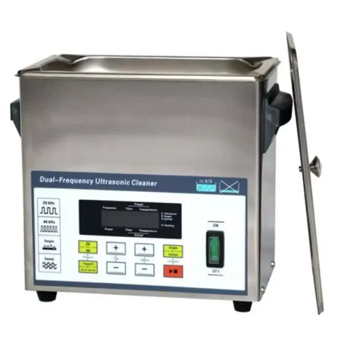 This cleaner features dual frequency settings of 20KHz and 40KHz, allowing for versatile cleaning options.
