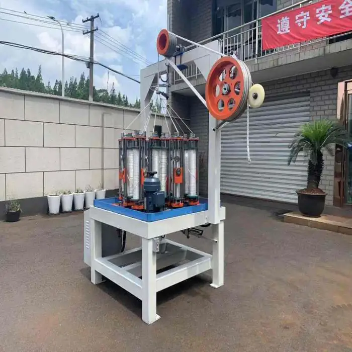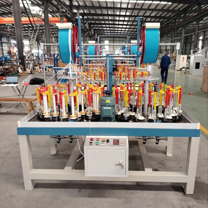 The machine features high-speed operation for efficient braiding, although specific speed metrics are not provided.
