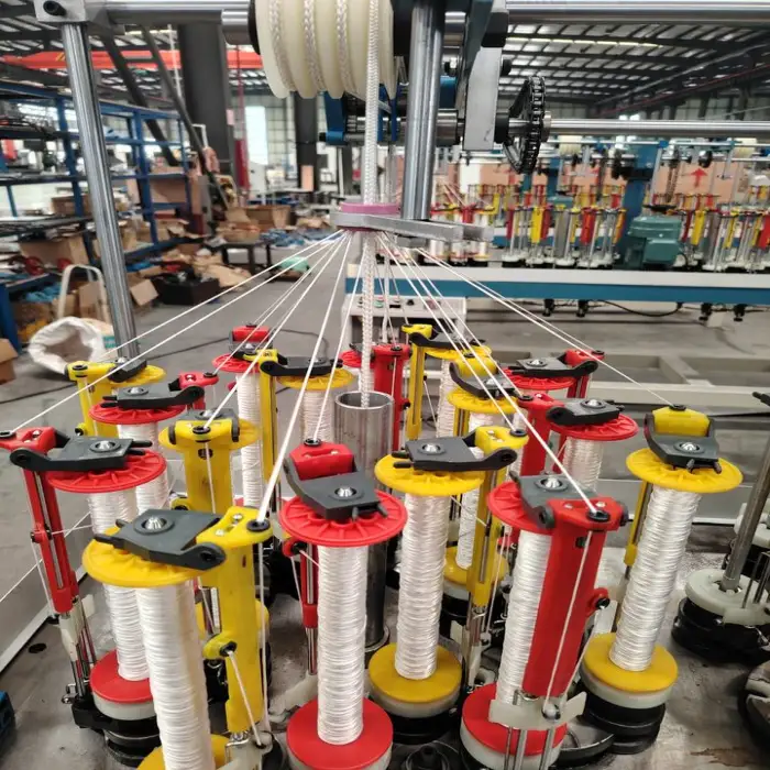 The machine is suitable for various industries, including manufacturing braided ropes, marine applications, crafts, and decorative purposes.