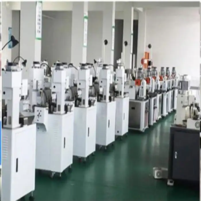 Key features include automatic operation, low noise design, compact size, efficient peeling and crimping, and robust construction.