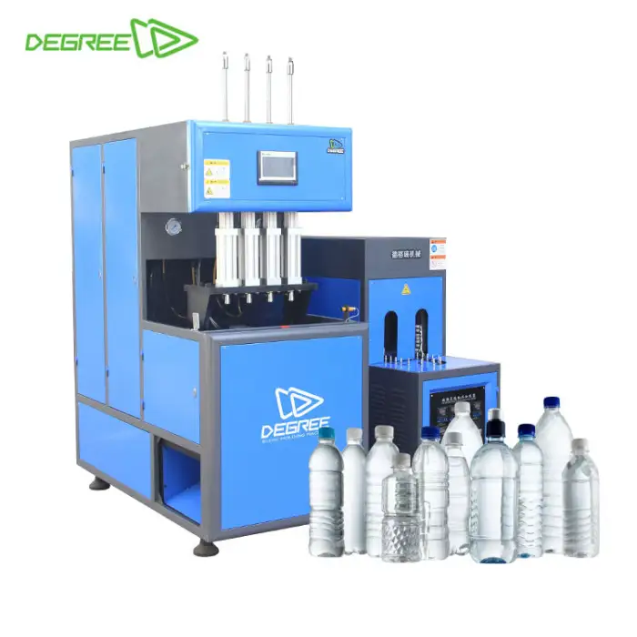 The machine produces 4 bottles at a time, allowing for efficient output and increased production rates for small businesses.