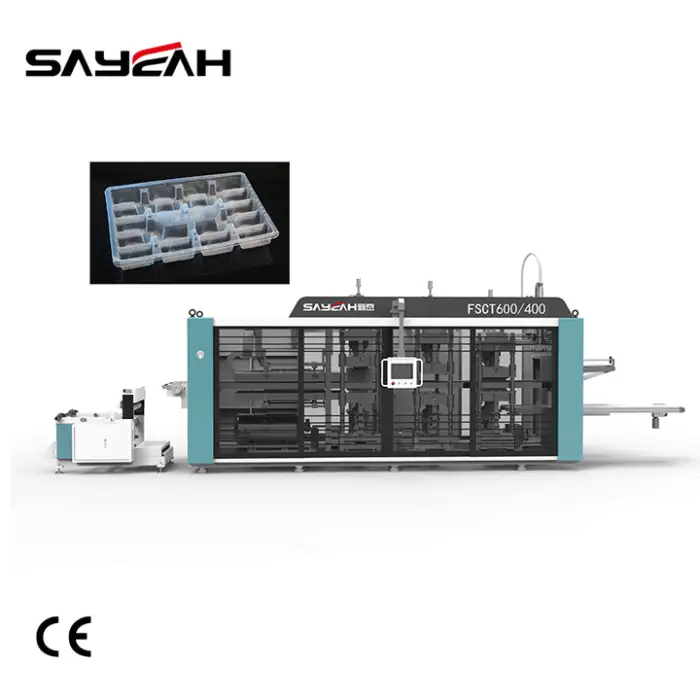 The machine is suitable for producing cake boxes, food packaging, plastic containers, trays, and custom plastic products for various industries.