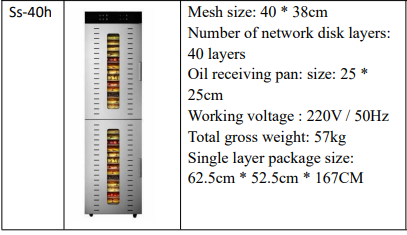 The mesh size of each drying tray is 40 * 38 cm, which provides even airflow for optimal drying.