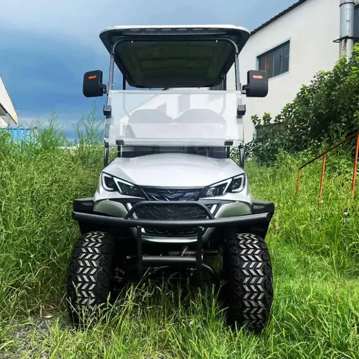 The minimum ground clearance of the golf cart is between 150-200mm, which helps it navigate rugged terrains.