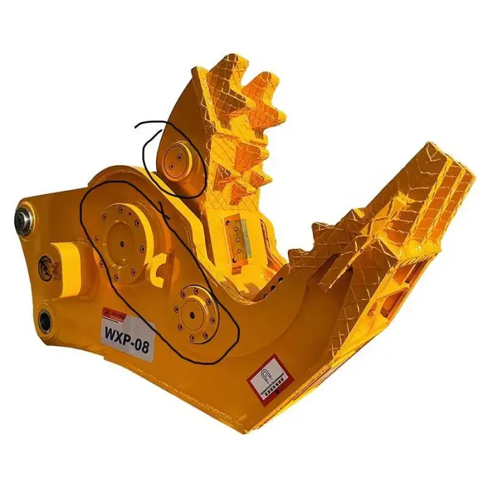 This hydraulic pulverizer is designed for building demolition, concrete crushing, recycling materials from old structures, site clearance, and heavy-duty construction tasks.