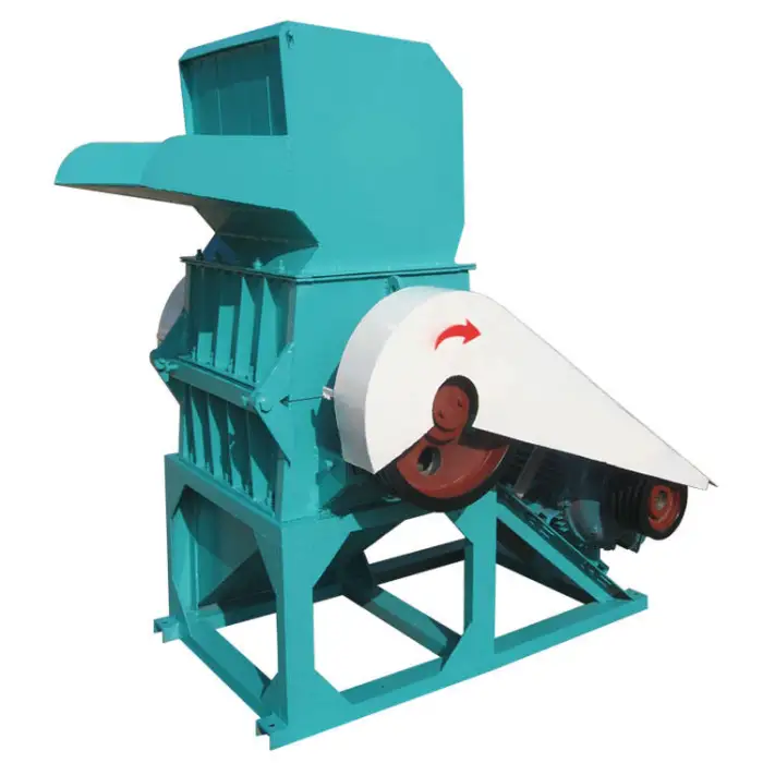 The crusher can handle various types of plastic waste including films, bottles, and hard materials.