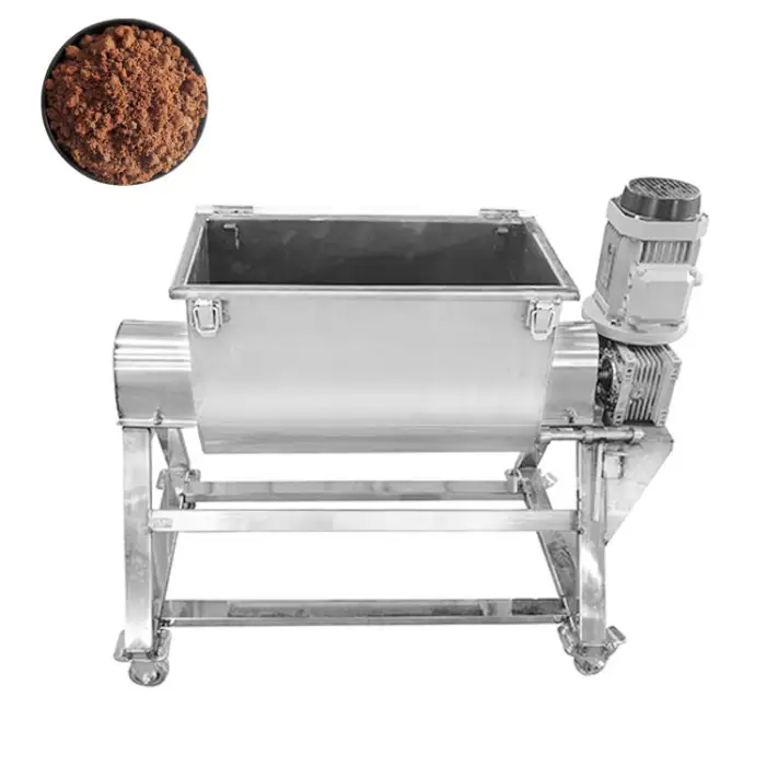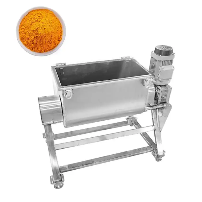 This mixer can handle various materials including food powders, chemicals, and plastics.