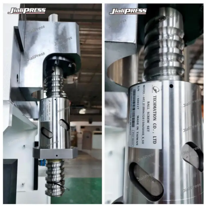 The press brake features an on-demand ball screw drive mechanism for enhanced performance and precision.