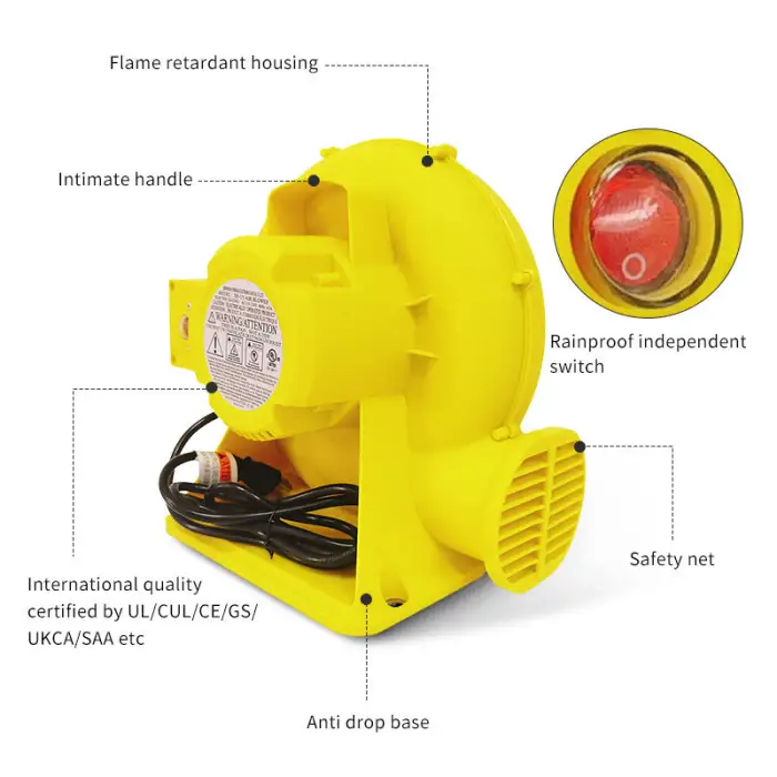 This blower is perfect for inflating outdoor toys, air mattresses, pools, event decorations, and other inflatables.