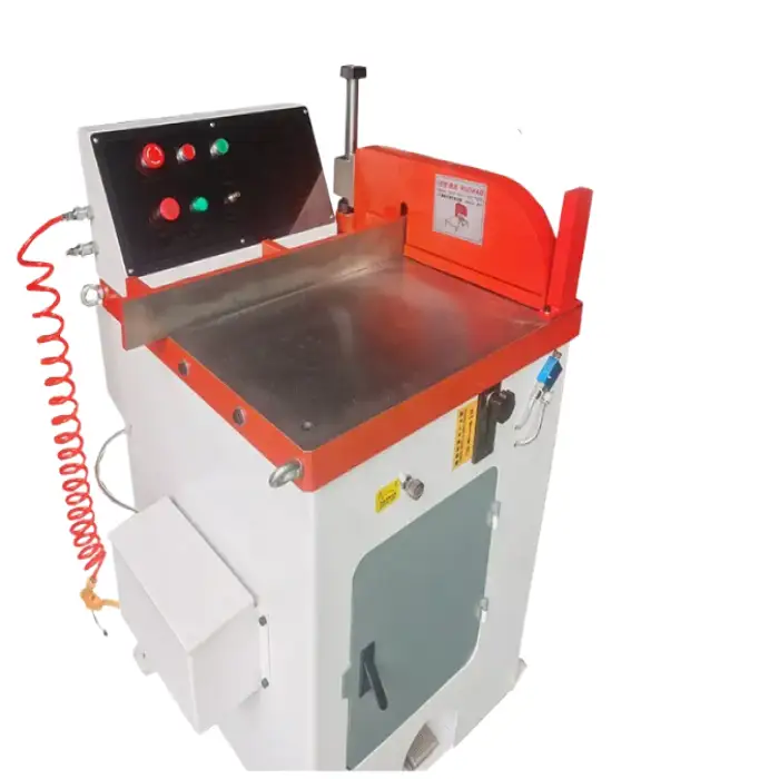 This machine specializes in making precise 45-degree corner cuts for aluminum profiles.