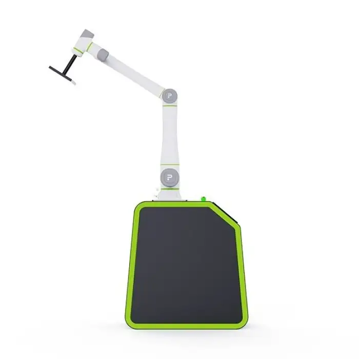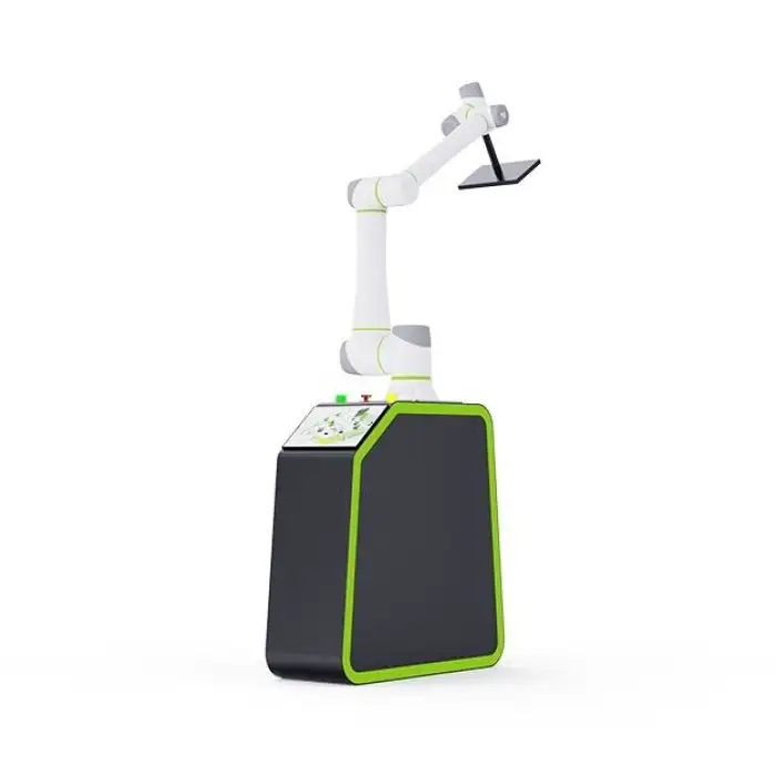The collaborative design allows the robot to work alongside human operators safely, incorporating features that prevent accidental collisions and injuries.