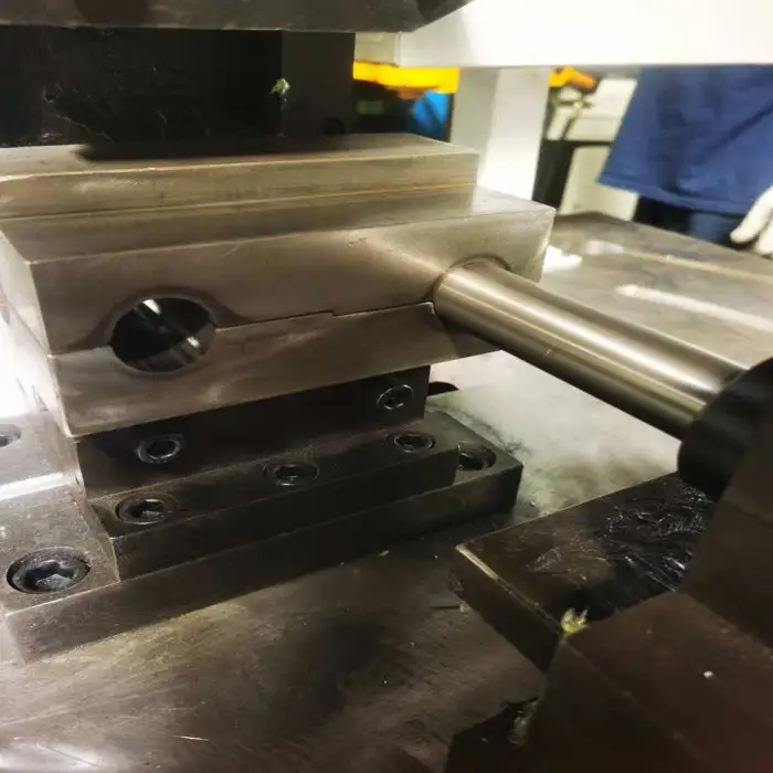 The machine is designed to cut various materials, including stainless steel and aluminum.