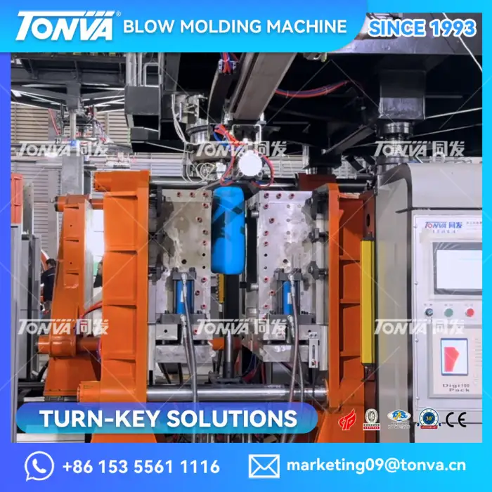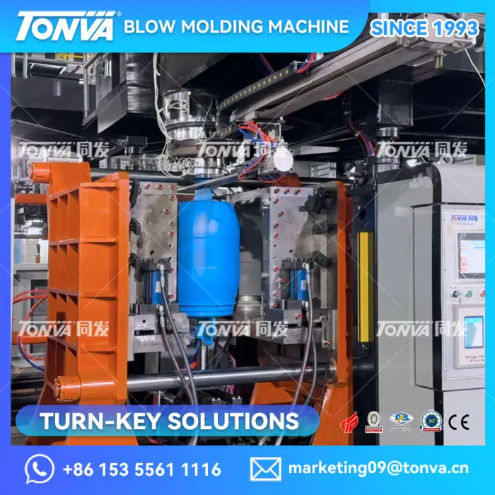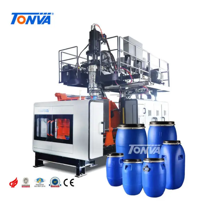 The machine can produce plastic storage barrels with capacities of 60L, 100L, 160L, and 200L.