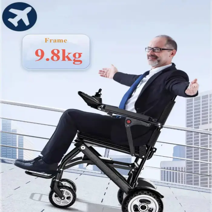 The wheelchair is designed to be ultra-lightweight, making it easy to handle and transport. Exact weight specifications can vary, but it is constructed from lightweight aluminum alloy.