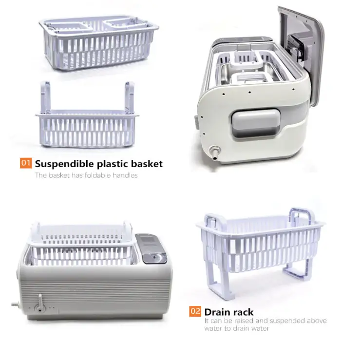 This cleaner is suitable for various items, including dental tools, jewelry, eyeglasses, watches, small electronic devices, and kitchen utensils.